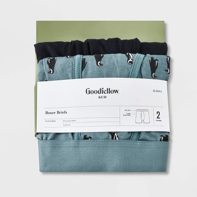 Take on your day in complete comfort with this 2-Pack Penguin Print Boxer Briefs from Goodfellow & Co™. This pack of boxer briefs includes two pairs — one in a solid hue and the other featuring a repeated penguin print on a gray background — to add variety to your underwear drawer. Made from a soft and stretchy fabric with a tagless design, the mid-rise briefs offer comfortable all-day wear. The full elastic waistband provides you a flexible secure fit, while the functional fly adds a practical touch.