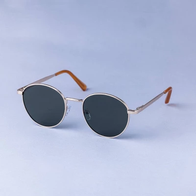 Sport a stylish sunny-day look with the Round Metal with Spring-Hinge Sunglasses from Goodfellow & Co™. These round sunglasses feature a gold-tone frame with gray lenses for appealing contrast you’ll love. Designed with a metal frame, these sunglasses are designed with UV protection lenses to help keep your eyes shielded from the sun. Plus, they also feature a spring-hinged temple and nose pads for comfortable wear.